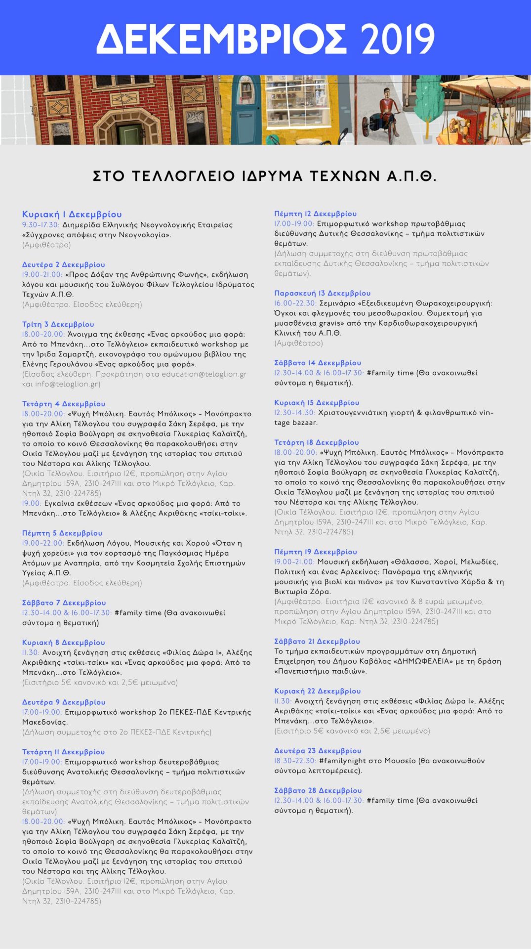 Πρόγραμμα εκδηλώσεων Δεκεμβρίου 2019