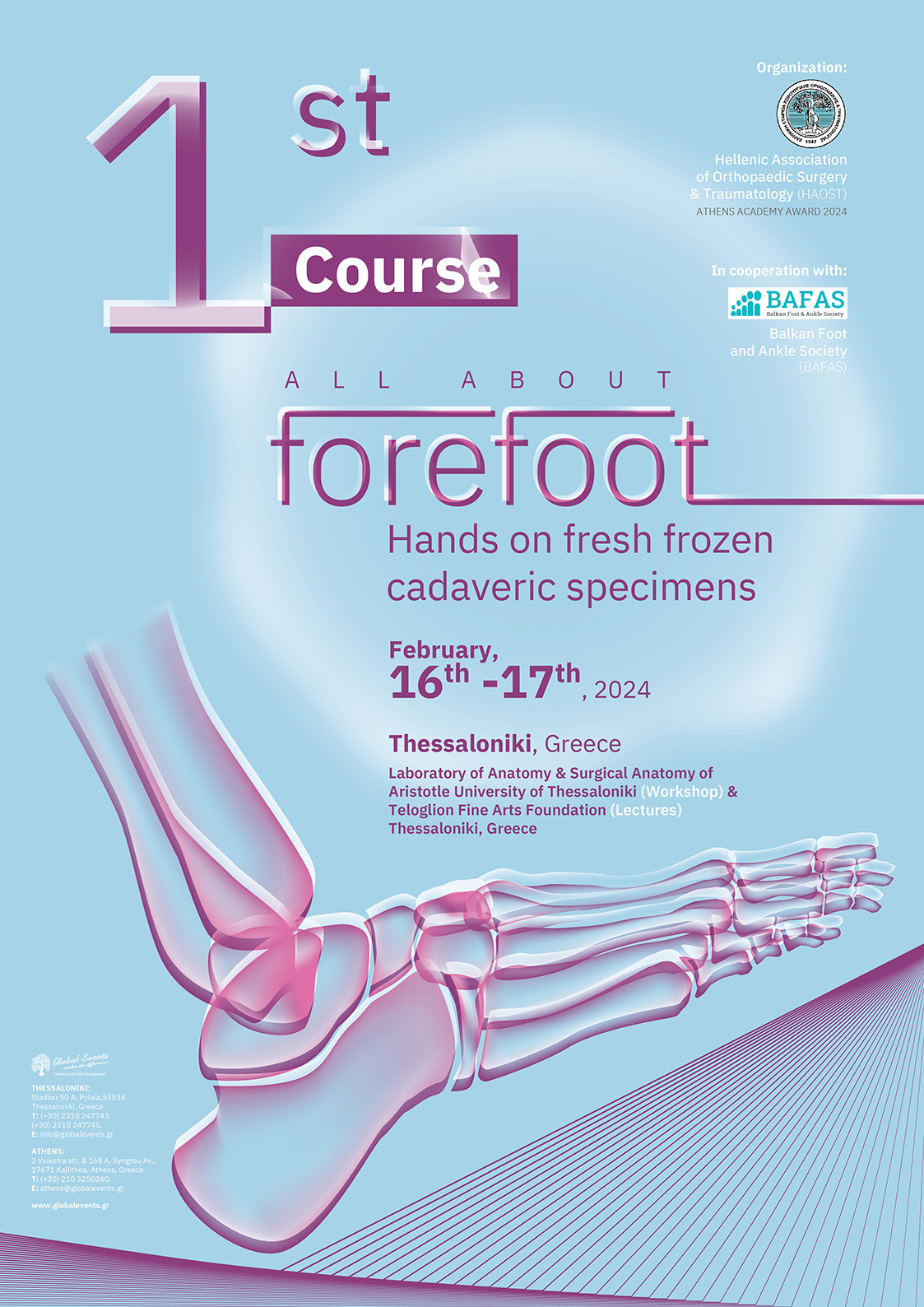 We are pleased to welcome you to the 1st Cadaveric Course “All about forefoot” which takes place on February, 16th-17th, 2024, in Thessaloniki, Greece.