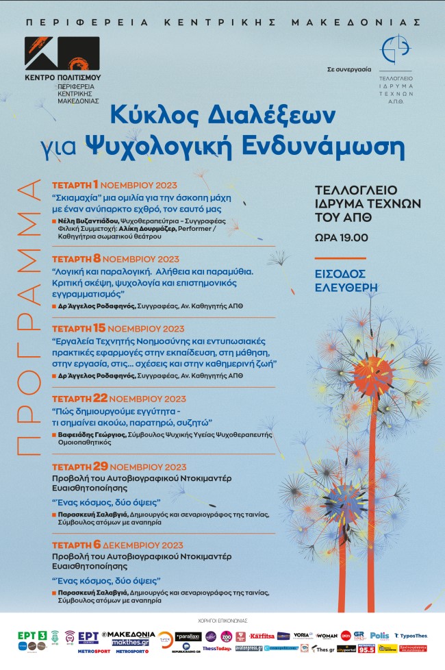 «Κύκλος διαλέξεων για Ψυχολογική Ενδυνάμωση» από το Κέντρο Πολιτισμού Περιφέρειας Κεντρικής Μακεδονίας