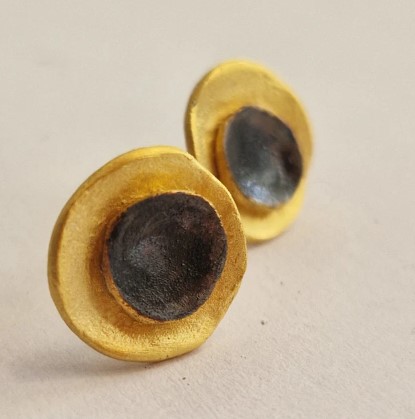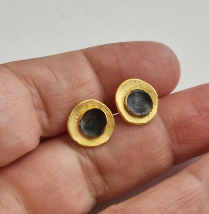 «Έκλειψη» Μικρά Επίχρυσα Ασημένια Σκουλαρίκια με Ματ Φινίρισμα και Σκούρα Πατίνα