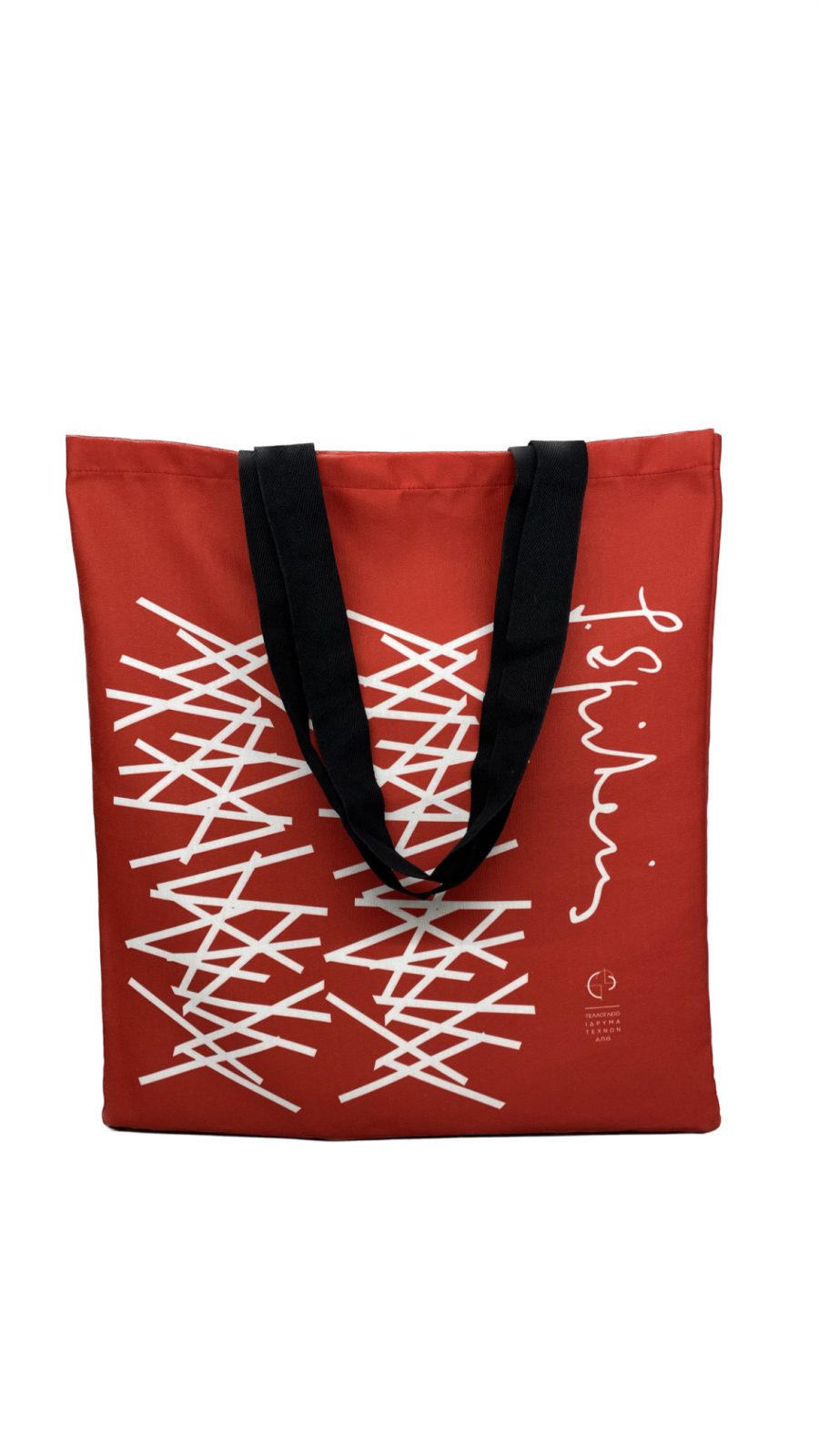 Υφασμάτινη τσάντα εμπνευσμένη απο το έργο «Απλά στοιχεία στο χώρο» της γλύπτριας Ιωάννας Βεροπούλου Σπητέρη.