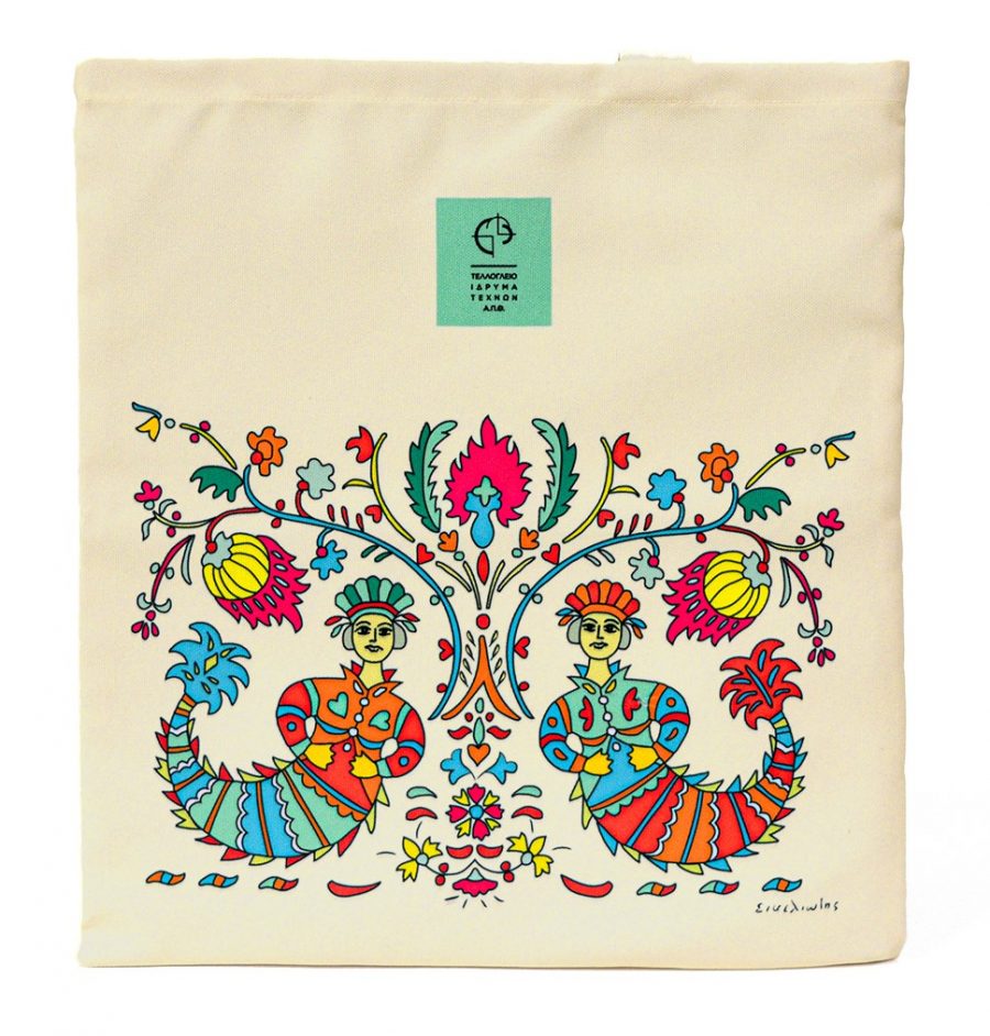 Υφασμάτινη τσάντα εμπνευσμένη απο το έργο «Γοργόνες και Άνθη» του Γιώργου Σικελιώτη, απο τη σειρά Παραδοσιακά Κεντήματα.